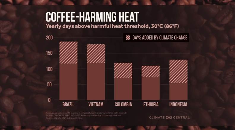 The Weather Network article notes that while the five top producers are affected so are all of the top twenty-five, which are responsible for ninety-seven percent of coffee output.